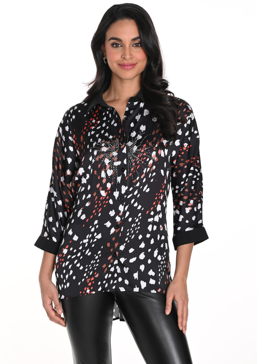 Frank Lyman 243521U Black/Multi Print Embellished Blouse