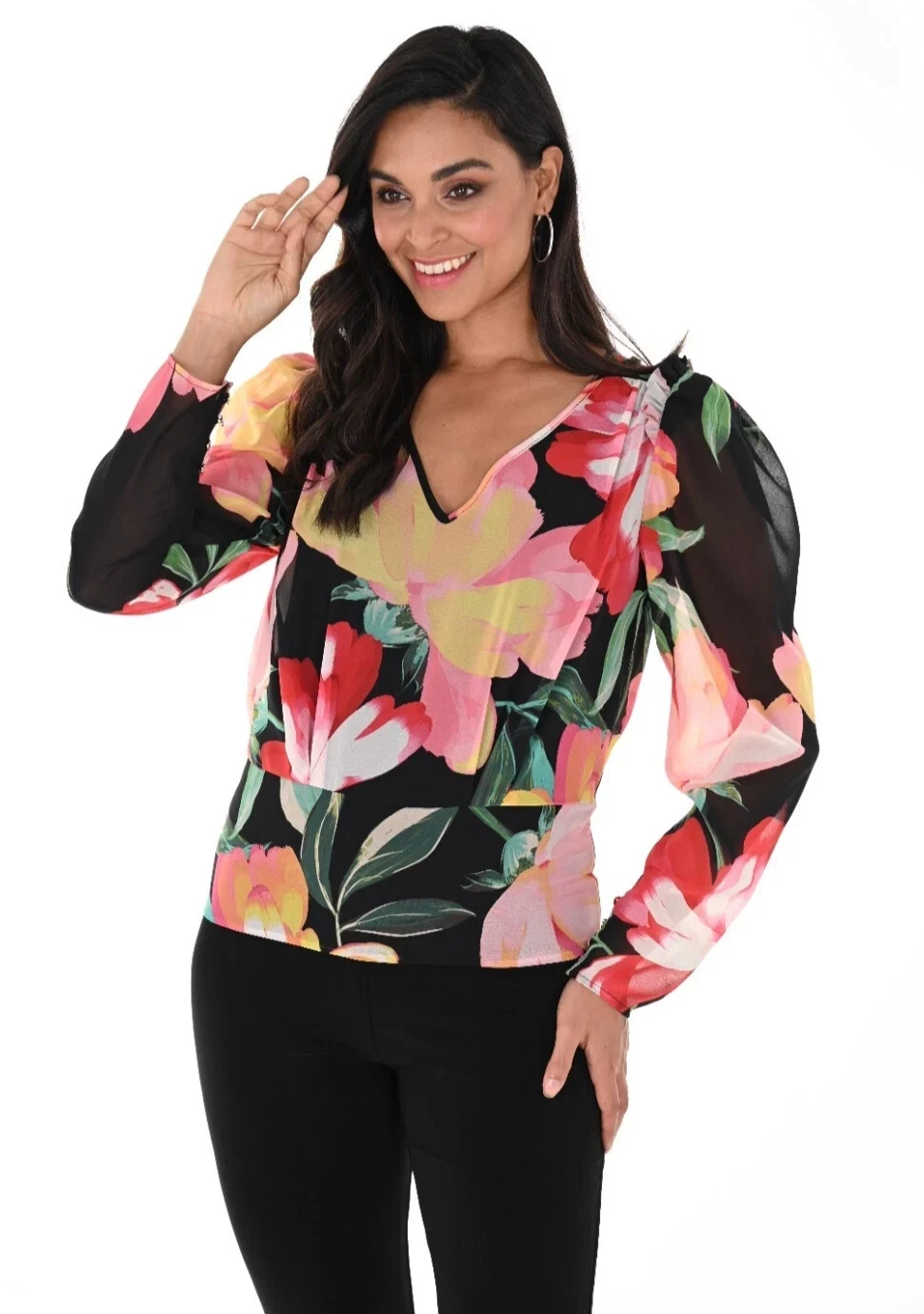 Frank Lyman 246155 Black/Multi Floral Chiffon Top