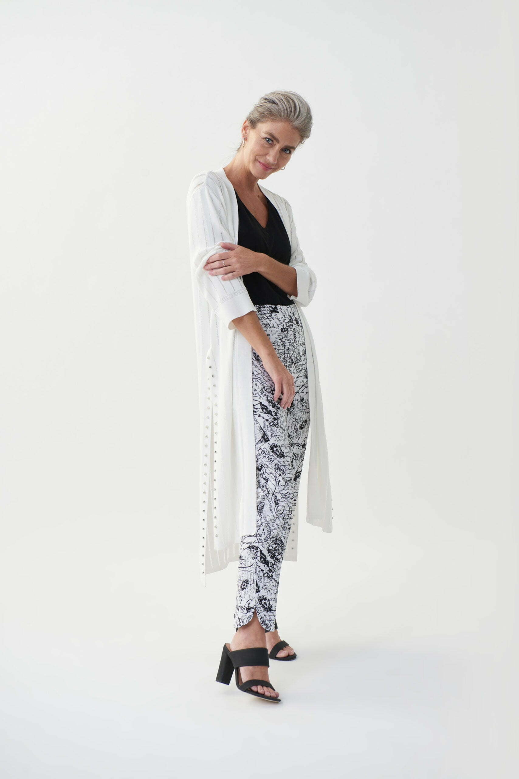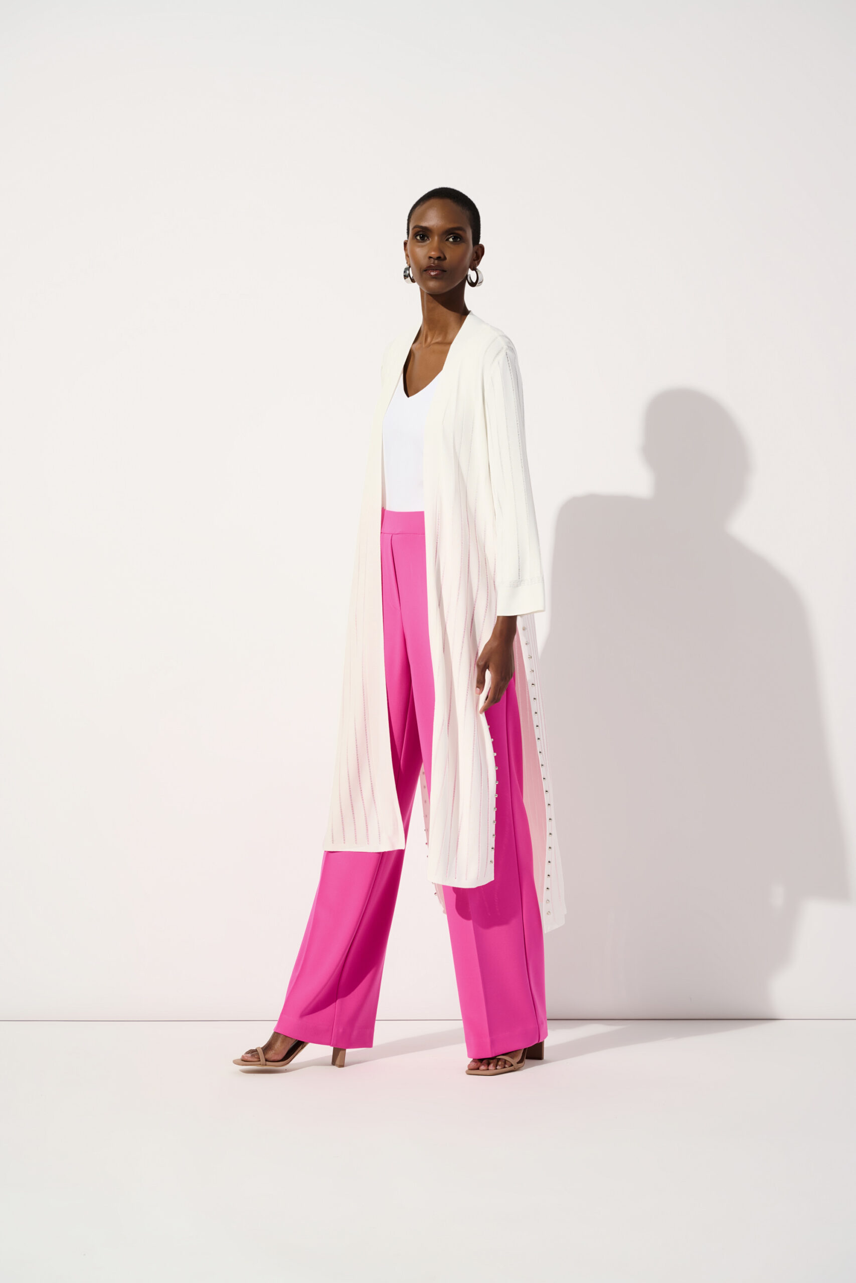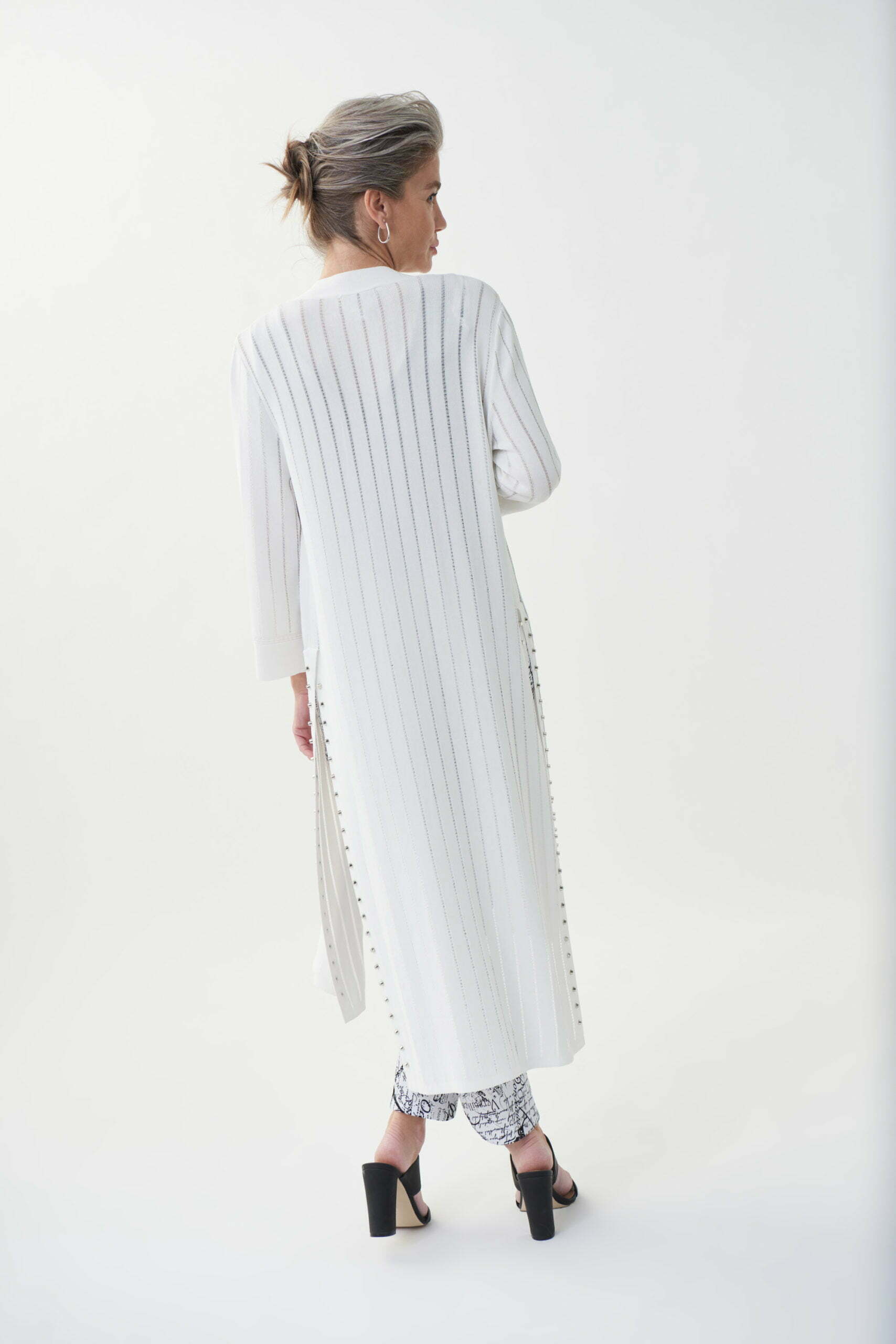 Choose an expressive look with this lightweight textured cover-up that has long side slits and bell sleeves to create movement and flow as you walk. The stud detailing along the slits gives it an edgy yet classy look for work or leisure.