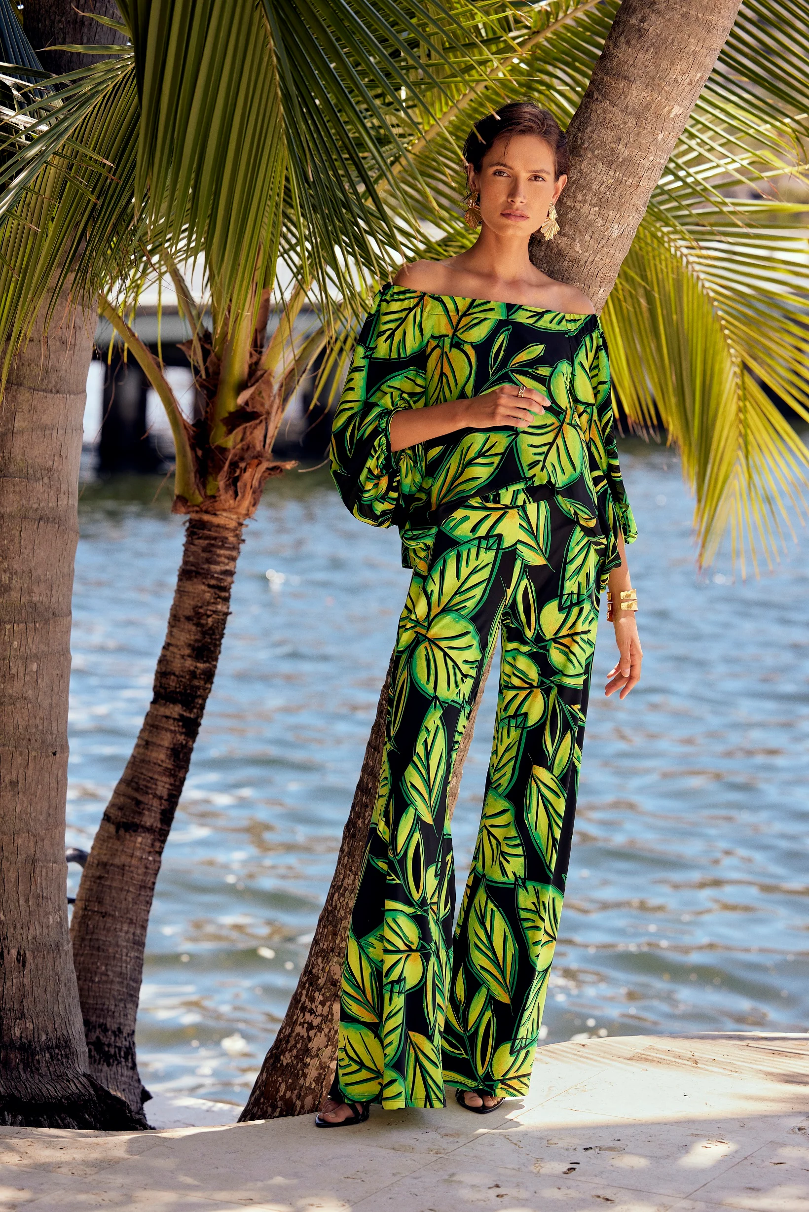 Matching leaf print trousers style 241288