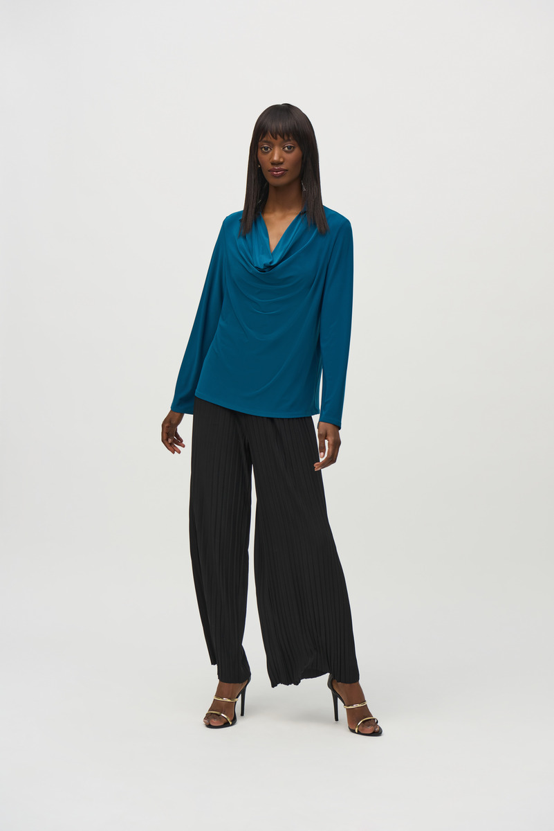 Joseph Ribkoff 244169 Black Pleated Wide-Leg Trousers