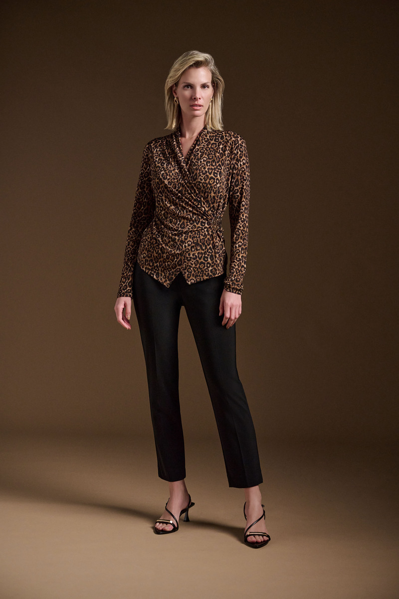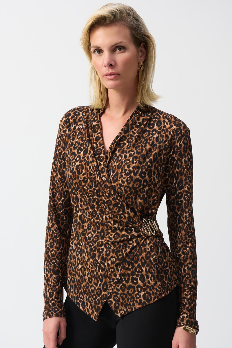 Joseph Ribkoff 244251 Beige/Black Animal Print Fitted Top