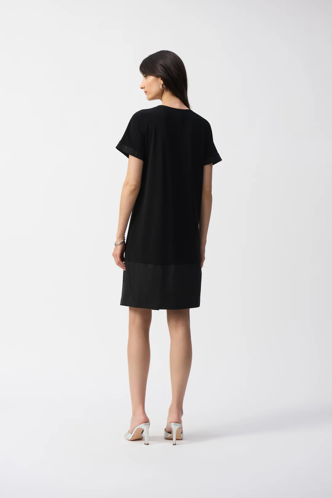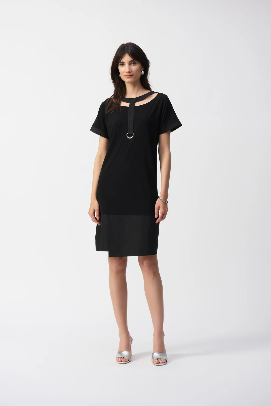 Look irresistibly chic in this silky knit and memory dress. The cocoon silhouette falls right above the knee and features short dolman sleeves that lend the garment a polished appeal. A sleek keyhole detail adorns the crew neck and add extra charm to this lovely modern design.