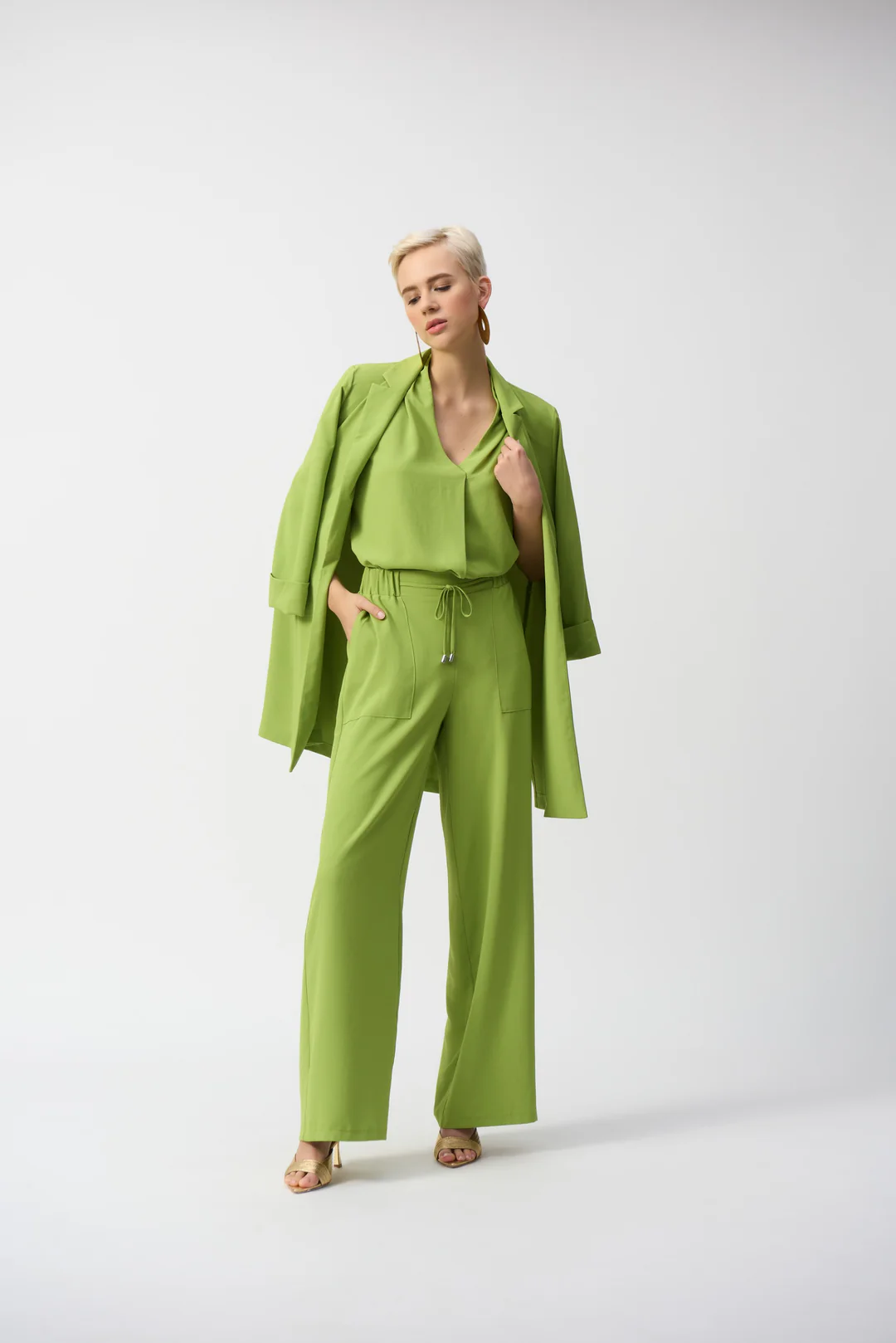 Joseph Ribkoff 251185 Greenery Textured Wide Leg Trousers