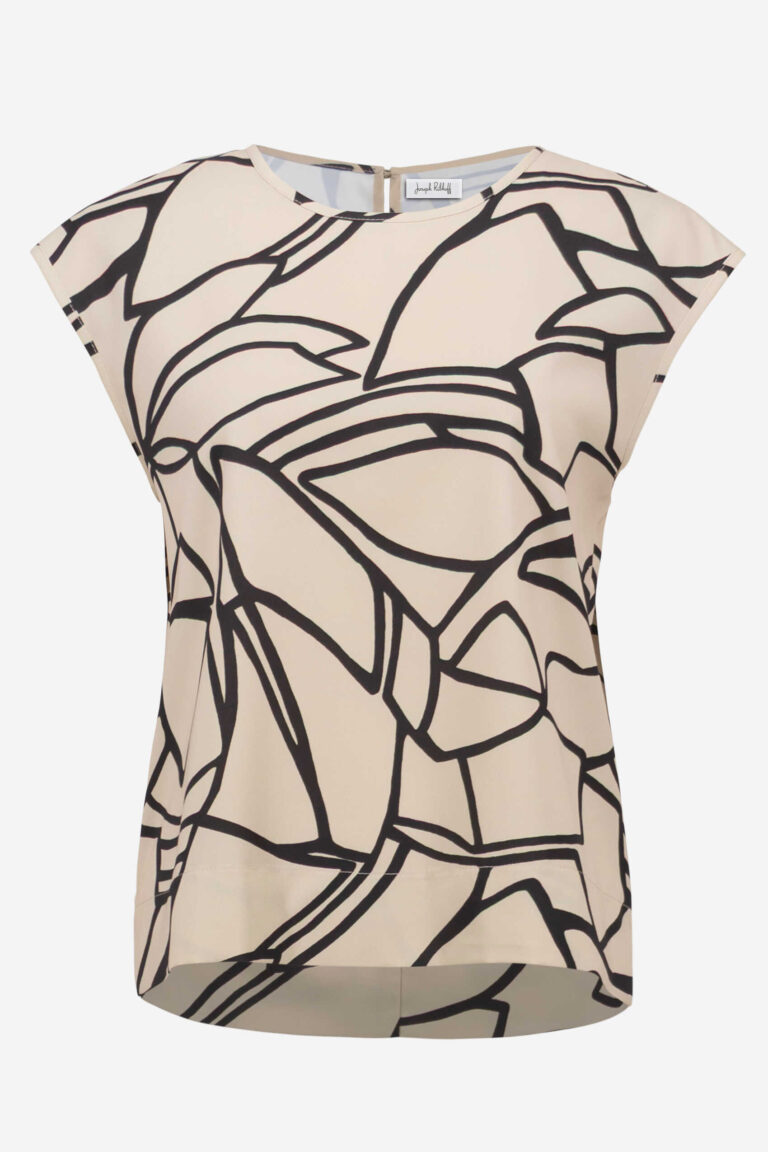 Fresh and lightweight, this fitted top features an allover abstract print on recycled woven fabric. Cap sleeves and a clean silhouette make it a standout piece for effortless styling. Complete the look with matching trousers style 261126
