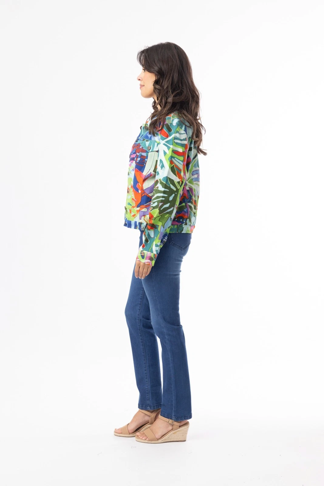 Orientique 23101LB Multi Print Leaves Blue Ponte Jacket