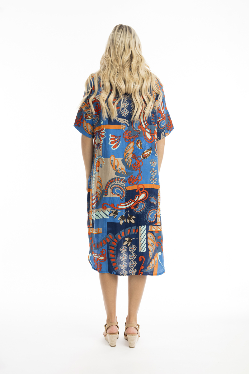 Orientique 30001 Blue/Multi Print Camps Bay Shirt Dress