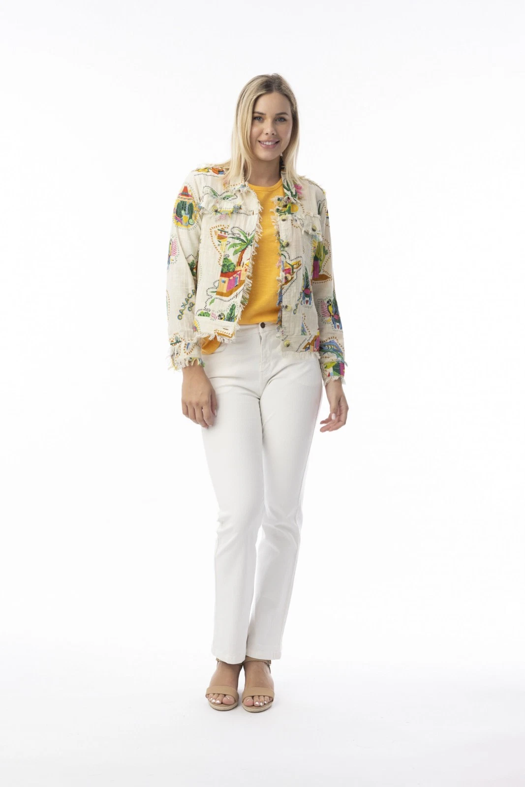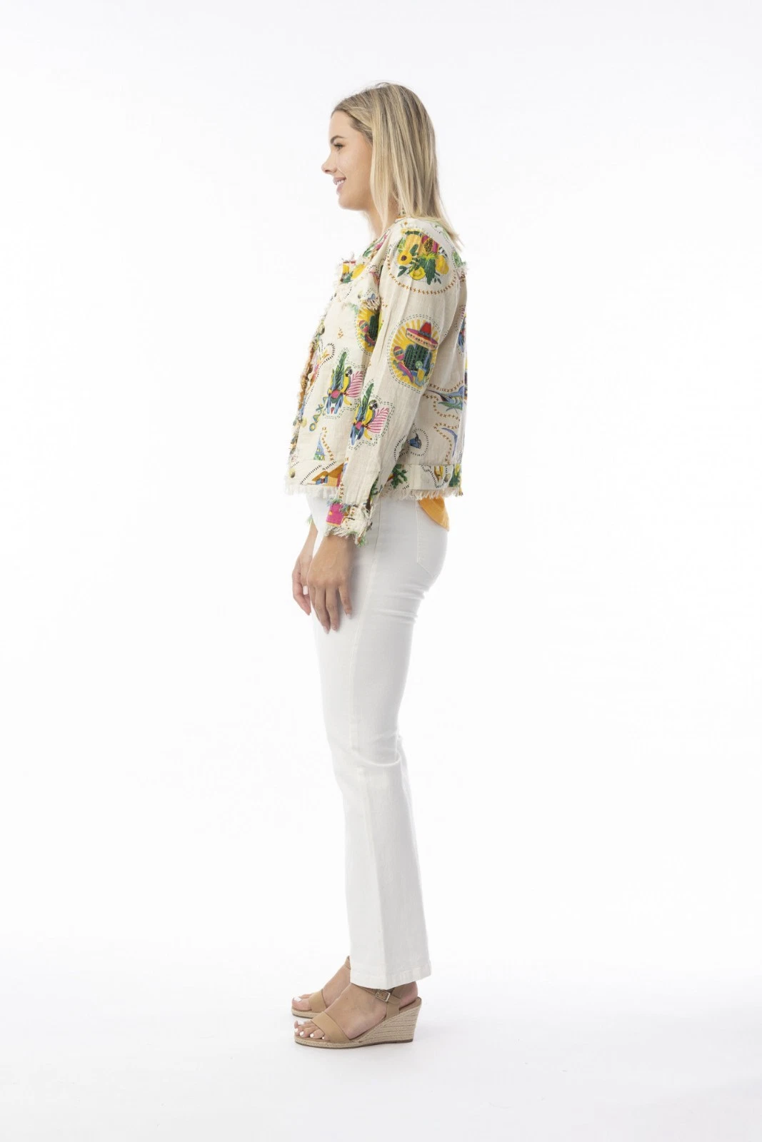 Our Guatemala cotton jackets are the perfect solution to summer layering. Featuring stylish frayed trim and front bust pockets, this jacket combines casual elegance with practical design. Perfect for layering, it offers both comfort and chic appeal, making it a versatile addition to any outfit.