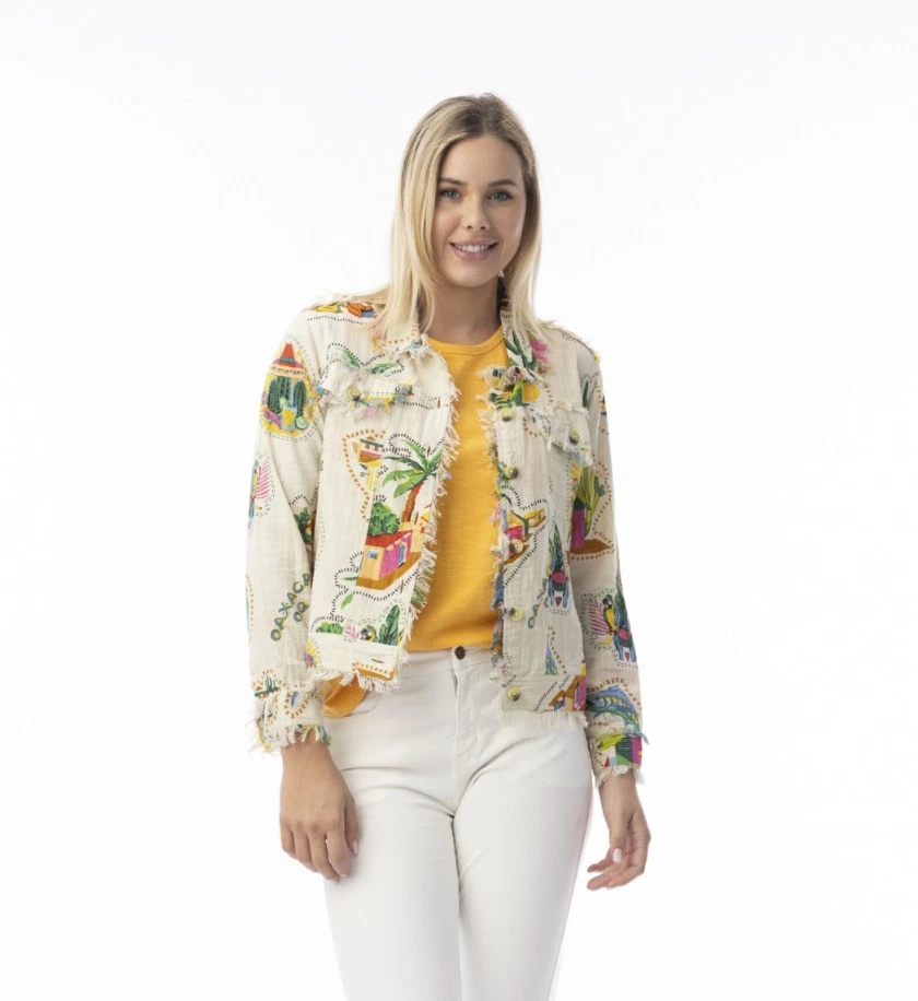 Orientique 32439 Sand/Multi Print Guatemala Cotton Jacket