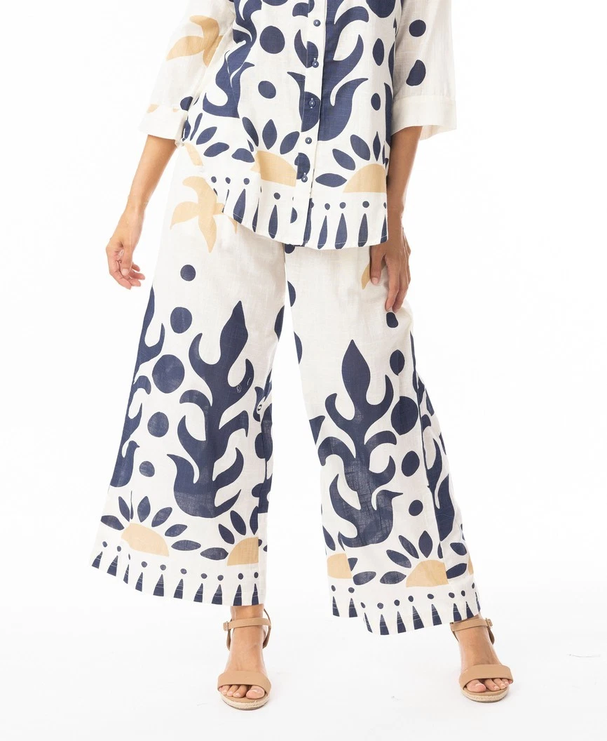Trousers designed with an elasticated waistband and convenient side pockets, these breathable cotton trousers are made for all-day comfort. The relaxed, wide-leg fit ensures comfort and ease. Complete the look with matching top style 42190