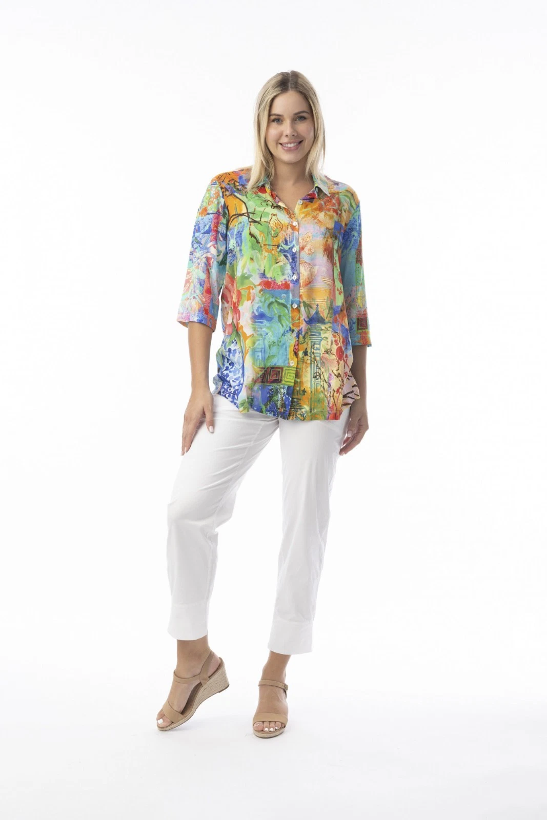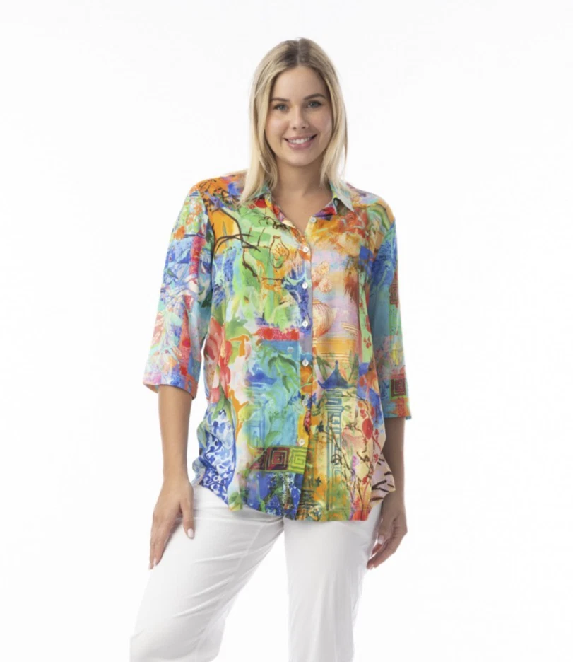 Orientique 72565 Multi Print Oriental Collared Shirt